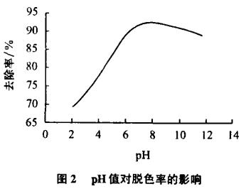 將幾份水樣的pH值分別調(diào)節(jié)到2、4、6、8、10、12,再投加相當(dāng)于80 mg/L的PAFC以200 r/min攪拌30 s,再以80r/min攪拌反應(yīng)4min,靜置5min,測(cè)定結(jié)果見圖2。